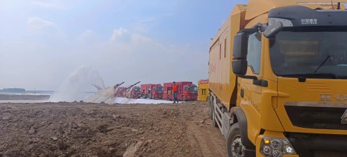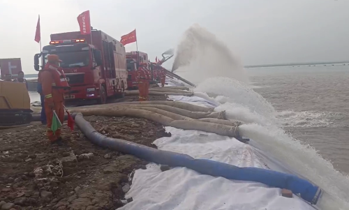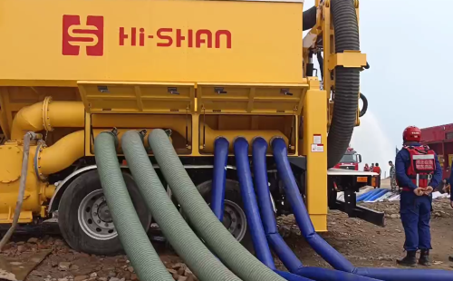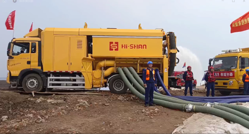 2022年5月多功能挖掘抽吸車參與荊州應急排澇演練。