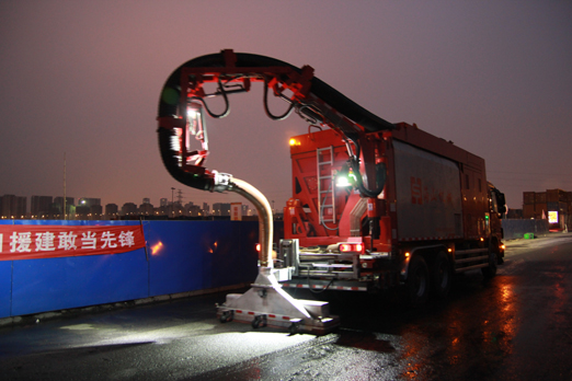 本次施工改變了傳統的由清掃車清掃作業、灑水車高壓沖洗、多種洗消設備聯合作業的施工模式,由一臺抽吸車即可完成,對污染物的清除率達到現場的環保施工要求。相對于傳統的作業方式,全密閉、無拋灑、地表清洗干凈,工作效率提升5倍以上。