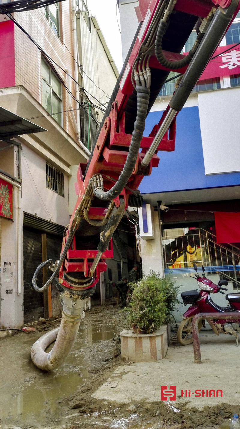 接下來的救援過程中,海山機械這臺救援車展開強大的臂架,將長長的清淤管深入到各種設備無法進入的各個充斥著泥石流和雜物的民舍、商鋪,以前所未有的極高效率迅速完成清理,相當于上百人同時作業的工作量,受到了救災軍民的一致好評。
