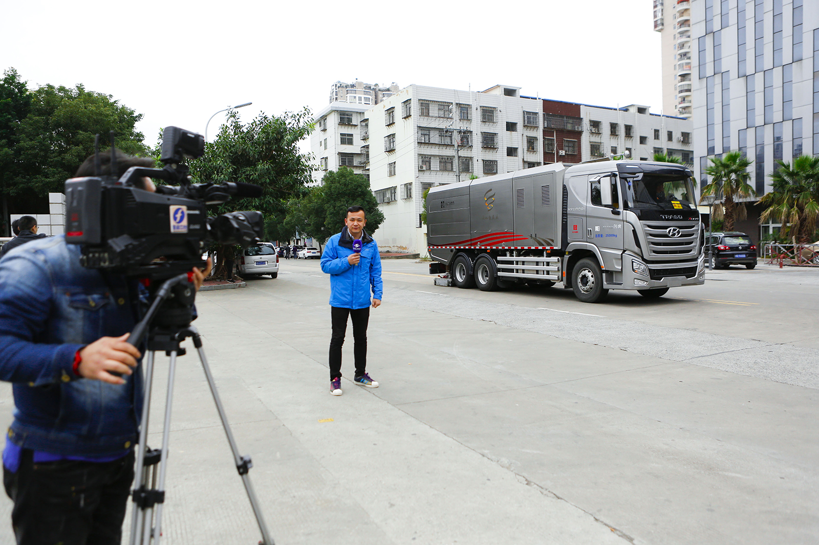 SETV News center sent out a camera crew to Putian to interview Mr.Yan Binglei, deputy director of Hishan Machinery research institute on site and deployed unmanned aerial vehicles to shoot from close-up and high-altitude sky the contrast before and after the pollution removal vehicle rode over the street. Journalists and cameraman from SETV Called were so amazed by the strong performance that they came to a conslusion that people in Putian were so blessed to have enjoyed such an advanced sanitation vehicle.