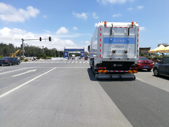 The road race course is nearly 20 kilometers. In order to allow riders to enjoy the event more comfortably, the Haishan Machinery Road Cleanup Truck thoroughly cleans the main road sections of the track and can completely absorb various pollutants in the road crevices. The roads after the operation are spotless. Any water spot, no need to spray water and spray, thoroughly solve the secondary pollution caused by the operation of the sweeper and sprinkler, and stop the dust from the source.